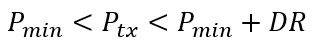 要確定是否可以同時使用激光二極管和光電二極管,只需使用下面顯示的公式進行比較。首先,發射功率Ptx(以dBm為單位)需要在接收器靈敏度Pmin和線性范圍的高端之間變化,線性范圍是根據動態范圍DR定義的: