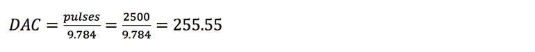 例如,如果在TIMER1中獲得2500個脈沖,則可以通過將讀取的脈沖除以我們先前發現的常數9.784來獲得DAC的值: