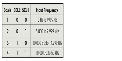 為了實現轉換,將輸入頻率分為四個刻度,這些刻度由輸入SEL1和SEL2 (圖2)手動選擇。