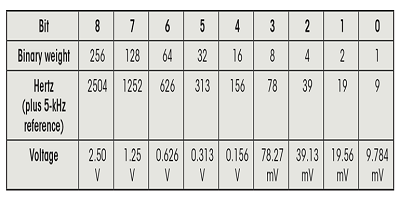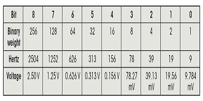 4.該表顯示了刻度3的頻率到電壓的轉換。