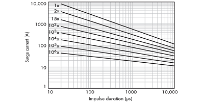 2. MOV的數據表將提供脈沖速率曲線;此示例適用于20毫米MOV。