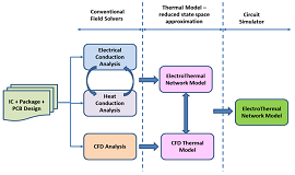可以使用一些標準的數值技術來提取電路網絡模型,并且可以將相同的方法應用于通過流體流動的熱傳導和熱傳遞。通過數值提取復雜系統中的熱流和流體流動回路,可以大大減少仿真時間。強大的模擬器已經為復雜3D系統中的關鍵區域提供了從粗到粗的離散化調整,下一代求解器將采用網絡方法來解決這些類型的多物理場問題。