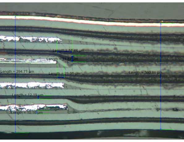 激光鉆孔腔可提供任何方法中的精度和位置精度。由于去除了介電材料,激光束受到精確控制,以實現均勻的深度控制和磨損。由于激光通常使用大波長,因此它無法穿透銅層,從而為該過程建立了定義明確的“停止層”。在形成腔之后,添加各向異性導電粘合劑物質,并將組件放置在空隙中。在特定壓力下將熱量施加到系統上,以熔化分散在粘合劑材料中的焊料顆粒并形成可靠的焊料鍵合。