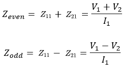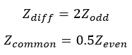 注意,偶數(shù)和奇數(shù)模式傳輸線的阻抗值是根據(jù)Z參數(shù)為一對耦合的傳輸線定義的: