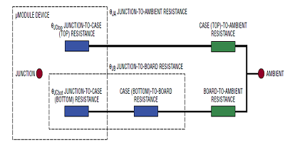 在幾乎每一個嚴格的,精確的溫度控制場景中,對熱狀況進行精確建模都是必不可少的。全面的LTM4663數據表在其許多性能和應用細節中,從圖形上表示了許多內部和外部熱阻(圖3;藍色電阻包含在μ Module穩壓器中,而綠色電阻是外部電阻)