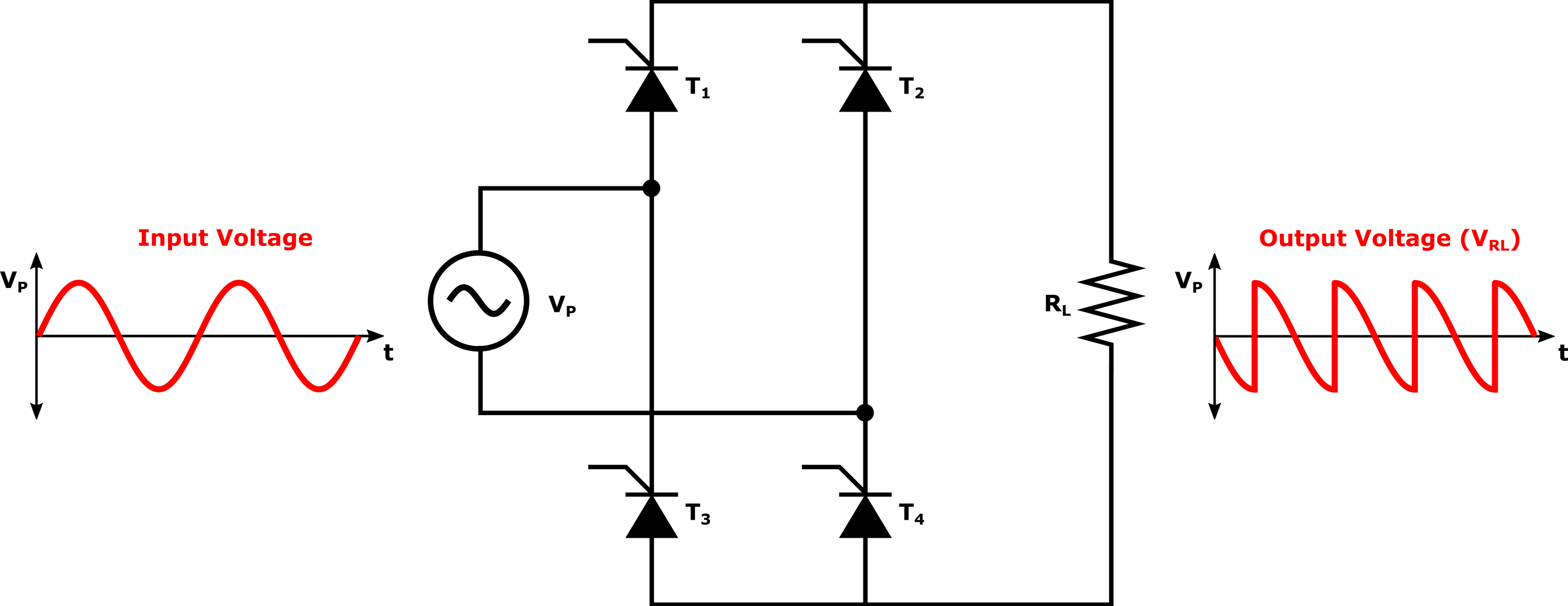 對于具有半波整流的單相電源,無論極性如何,交流電中只有一半會通過,而另一半則會通過。由于只有一半的輸入波形到達(dá)輸出,因此轉(zhuǎn)換為較低的輸出電壓。同樣,半波整流需要在單相電源中使用單個二極管,在三相電源中使用三個二極管。