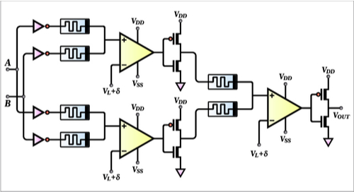 CMOS技術輕松集成到芯片邏輯和VLSI芯片中。此外,它們以較高的速度運行,同時保持極少的功率損耗特性。此外,CMOS反相器提供了出色的邏輯緩沖功能,因為它的高和低噪聲容限同等重要。