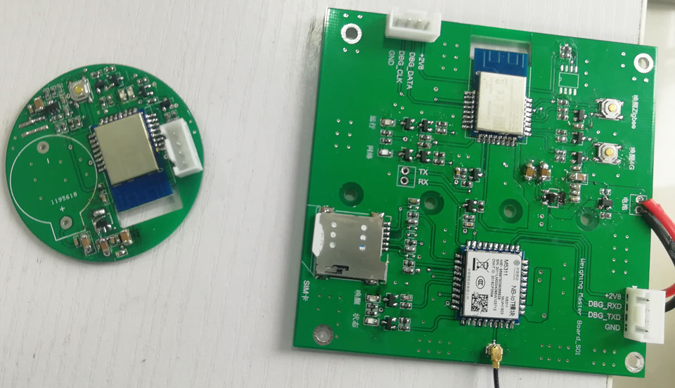 1、本套測(cè)重器有4個(gè)半橋式稱重芯片,5個(gè)zigbee模組,1個(gè)4G模組, 4個(gè)紐扣大小鎳氫電池, 1個(gè)A/8號(hào)電池大小的鎳氫電池, 若干電路底板組成